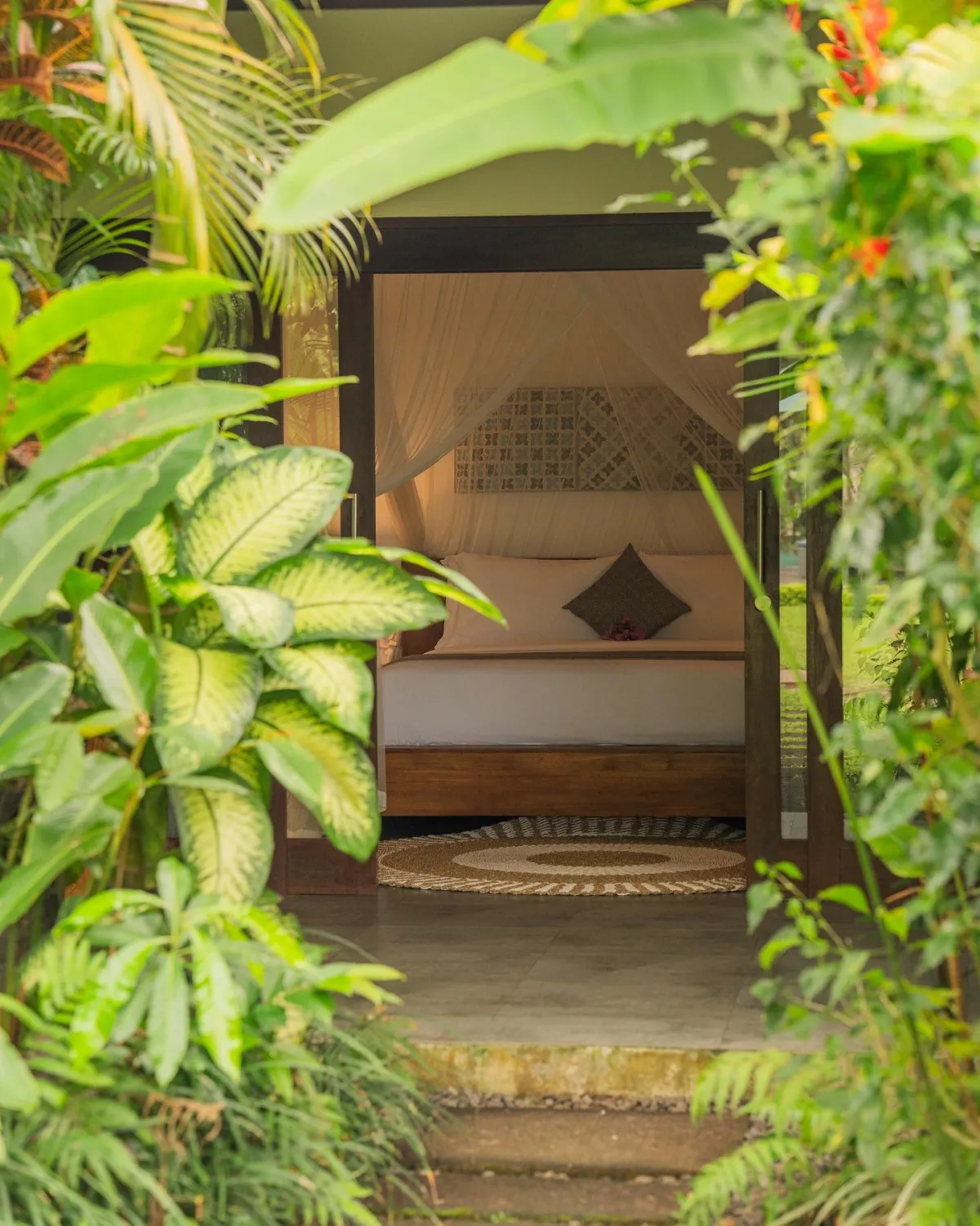 You have full freedom to roam the luscious nature grounds, swim in the saltwater pools, and lounge in gazebos or your private balcony